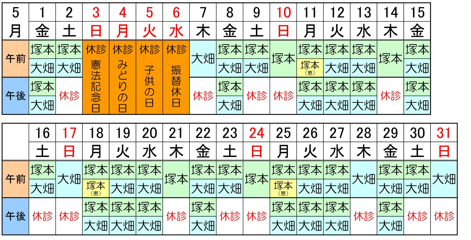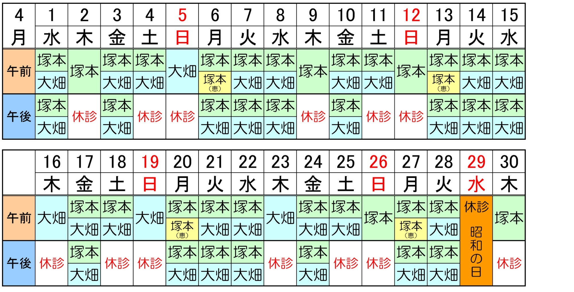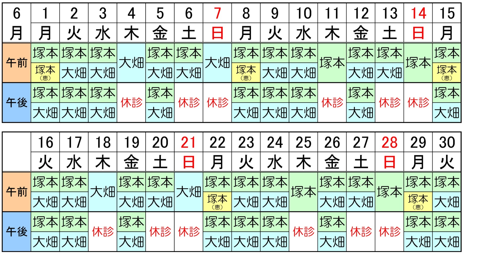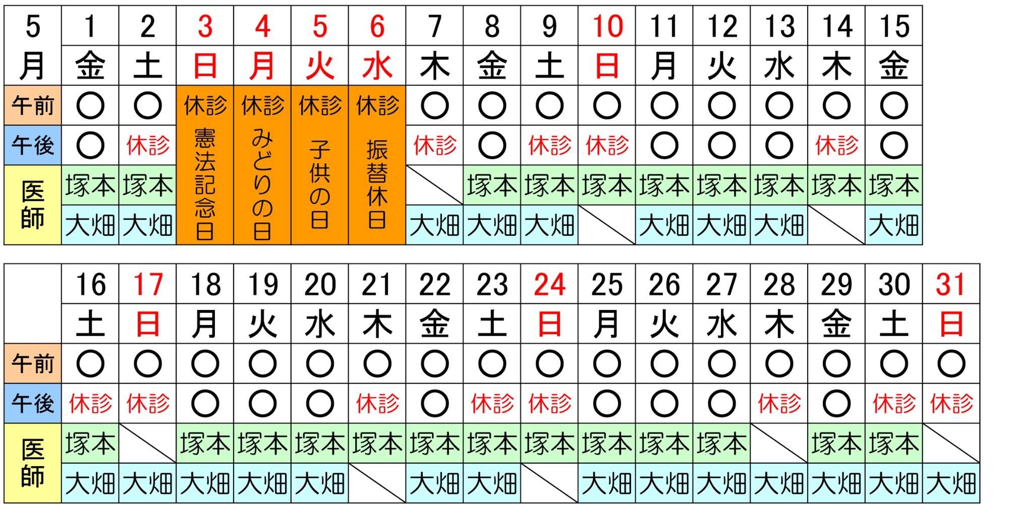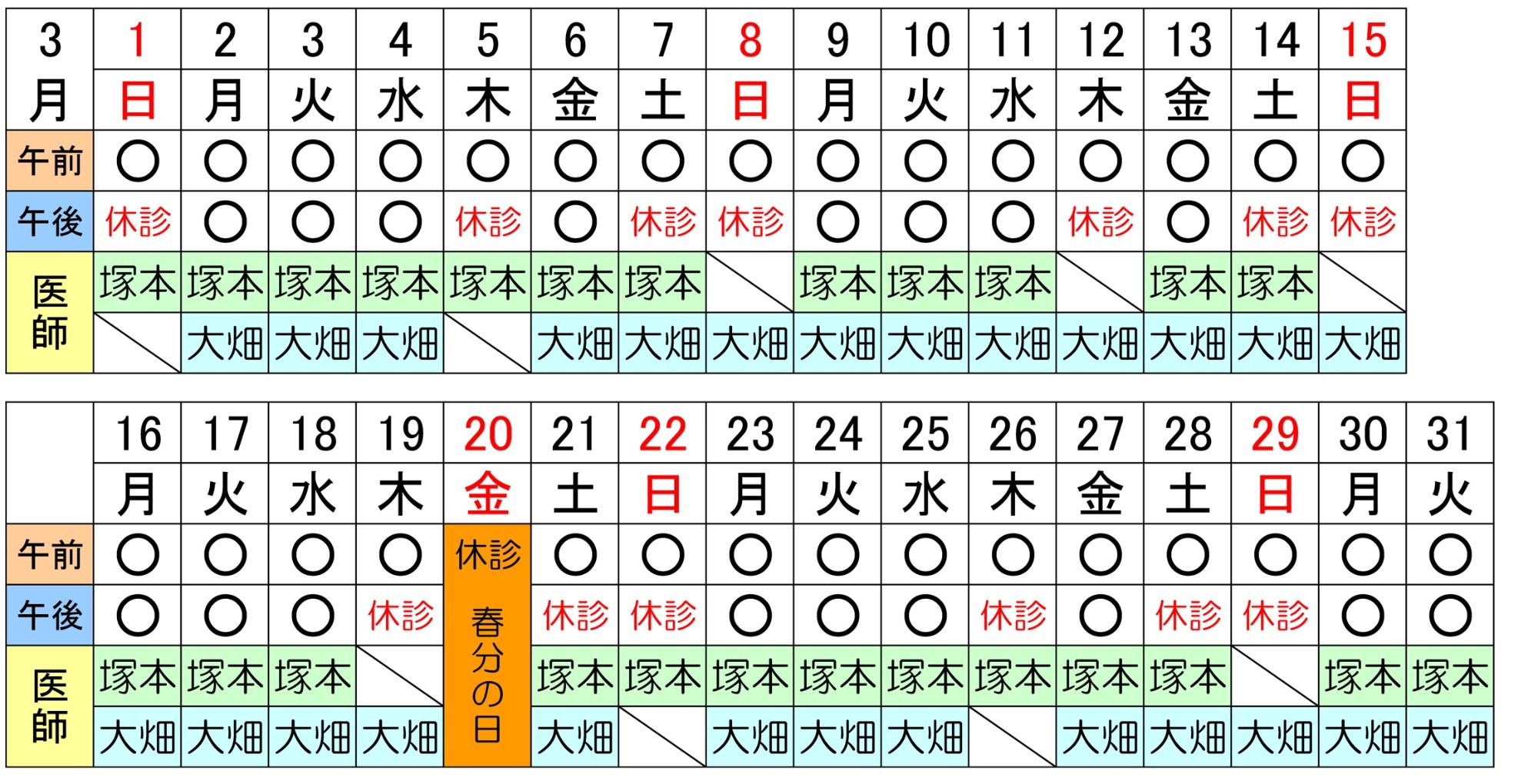 医師のスケジュール